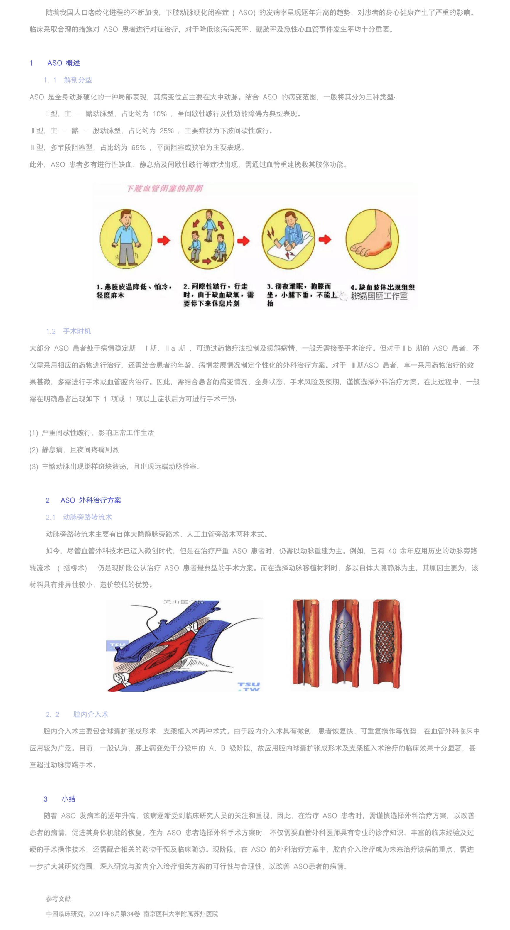 「科普專欄」 下肢動脈硬化閉塞癥外科治療方案