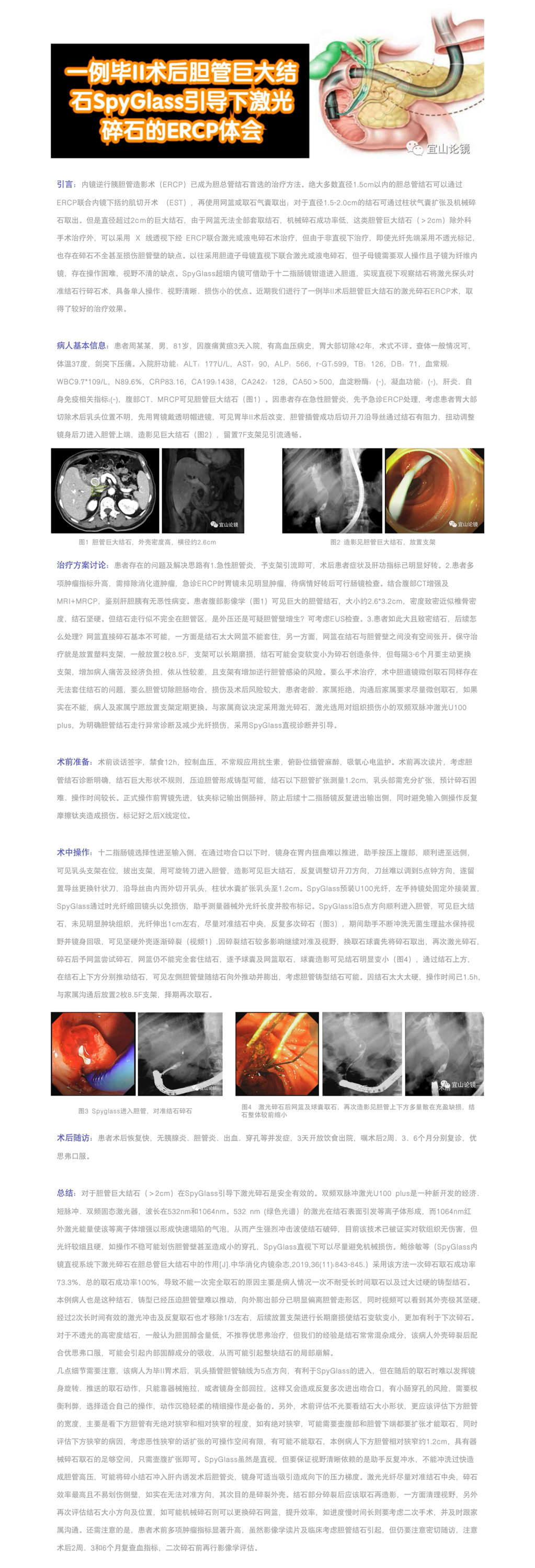 鄭海明|一例畢II術后膽管巨大結石SpyGlass引導下激光碎石的ERCP體會